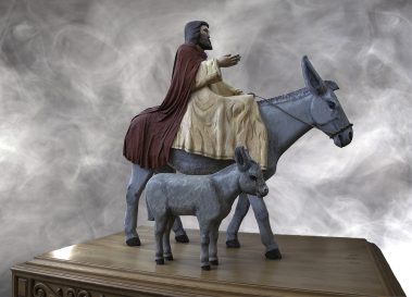 El conjunto actual fue regalado a la Cofradía por el M.I. Ayuntamiento de Agreda, siendo su alcalde D. Pedro Cilla Valenciano, que también era hermano. Se bendijo el Domingo de Ramos del año 1952, por la tarde, en la iglesia de Nuestra Señora de los Milagros. Fueron padrinos de la bendición D. Luis López Pando, gobernador civil de Soria y su esposa. Sustituyó a otro más antiguo que se utilizó hasta los años 50. Este último tenía un árbol que se adornaba con naranjas y otras frutas, las cuales se repartían al final de la procesión entre los chicos.