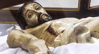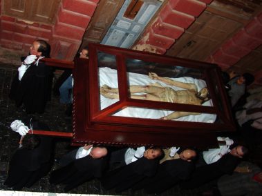 Magnífica escultura barroca de finales del siglo XVI o principios del XVII. Era el Cristo de la Venerable Orden Tercera. Perteneció a los Padres Franciscanos del convento de San Julián, al igual que otros Pasos se llevó a la iglesia de la Peña. Tiene los brazos abatibles. La postura de la cabeza nos indica que es un crucificado, no un Cristo yacente. En los libros de la Cofradía del año 1797 aparece lo siguiente: «que se vuelva a hacer el descendimiento como se hacía anteriormente». Esta costumbre, recuperada, se mantuvo hasta el año 1952. El día de Viernes Santo se bajaba desde la iglesia de Nuestra Señora de la Peña a la Parroquia de la Virgen de los Milagros. Se le ponía en la cruz, en el Altar Mayor, para presidir el Sermón de las Siete Palabras. Al final del mismo se hacía el Descendimiento y se colocaba en la urna de cristal. Esta imagen salía antiguamente bajo un palio negro, según consta en los libros de la Cofradía del año 1829. Así se hizo hasta que Roma prohibió que las imágenes fueran de ese modo. La urna en la que ha salido hasta el año 2005 era de mediados del siglo XIX. El manto de terciopelo granate que la cubre fue regalo, hacia el año 1980, de dos señoras de Ágreda, una de ellas hermana de la Cofradía. A principios del año 1996, fue adecuadamente restaurado por Dª Mercedes Nuñez Motilva. El trabajo lo pagó el hermano D. José María García Royo. En el año 2006 se ha estrenado una urna nueva de nogal y cristal que, colocada sobre unas andas adecuadas, permite una buena contemplación de la imagen. Este nuevo trabajo lo pagó el M. I. Ayuntamiento de Ágreda. Se ha conseguido con ello un magnífico conjunto, digno de la talla. Es portado a hombros por diez personas, recordando una de las actividades destacadas de la Cofradía: llevar de ese modo en su entierro a los cofrades fallecidos. Así, en Ágreda, varias personas voluntarias seguirán llevando a hombros a “Nuestro Hermano Mayor” en la Procesión General de su Santo Entierro en nombre de todo el pueblo