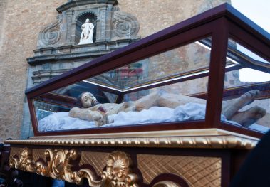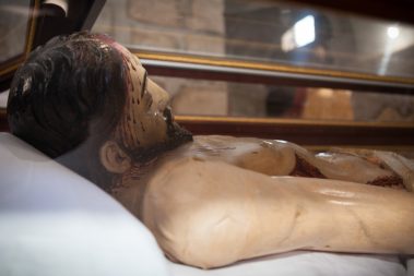 Esta imagen vestida procede de la exclaustración del año 1836, dictada por Mendizábal. Pasó a la Cofradía todo el patrimonio que los Padres Franciscanos tenían en el convento de San Julián de la Arena, el actual Campo Santo. Todas esas imágenes se depositaron en la iglesia de Nuestra Señora de la Peña, de donde salían antiguamente en la procesión de Viernes Santo. Hasta el año 1955 se celebraron procesiones generales dos días: Jueves Santo (La Pasión) y Viernes Santo (El Entierro) con imágenes, pasos y símbolos distintos para cada procesión. La copa que la imagen lleva entre las manos nos recuerda a la del perfume de nardo puro del que nos habla el Evangelio.
