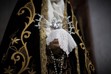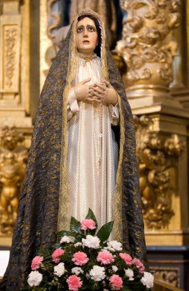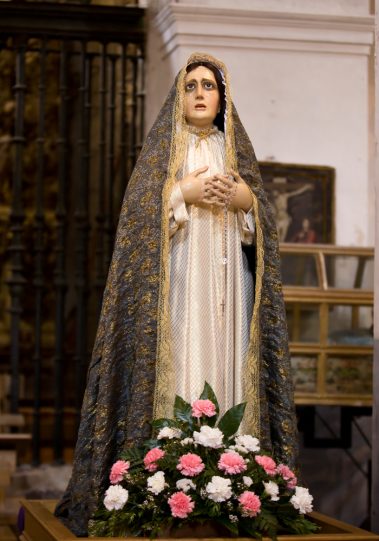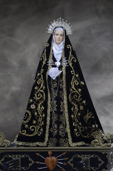 Imagen vestida, cuyo rostro expresa el gran dolor de la madre al presenciar los tormentos de su hijo. También perteneció a la V.O.T. de los Padres Franciscanos. En la desamortización o exclaustración de Mendizábal de 1836, pasó a formar parte del patrimonio de la Cofradía junto con otras imágenes del Convento de San Julián de la Arena. Se restauró en el año 1954 y se le cambió la vestimenta. Al igual que San Juan Evangelista, salió junto al Cristo del Calvario de Santa Mónica en la procesión de Viernes Santo durante 32 años. Desde 1986 sale sola en la procesión.