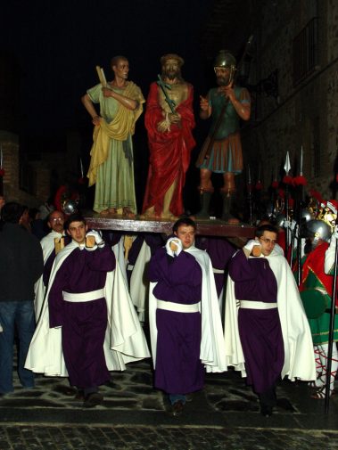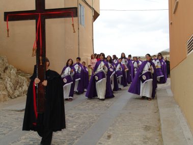 Es una cruz desnuda de la que penden “Los Bolillos” que son unos pequeños cálices de madera. Nos recuerdan las cinco llagas de Cristo Crucificado. Además de salir en ambas procesiones del Viernes Santo, preside el Vía Crucis del Domingo de Ramos por “La Calzada”. Hay noticias de que el Vía Crucis citado se instituyó canónicamente en el año 1614 por los Padres Franciscanos del antiguo convento de San Julián de la Arena. En las procesiones del Viernes Santo esta cruz se lleva con traje de gala.