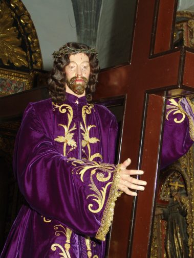 Imagen vestida. El escultor D. Antonio Rioja restauró su cara y manos en el año 1951 cobrando por ello la cantidad de 400 pesetas. En esa fecha se le renovó también la vestimenta y se le puso una nueva cartela con la faz de Cristo que ha llevado hasta el año 1994. Fue adquirida por la cofradía en el siglo XVII y es una de las imágenes que estaba junto al Santo Cristo de la Cruz Cuestas en la ermita de «El Humilladero», cerca del cuartel actual de la Guardia Civil. Desde 1995 lleva como cartela una reproducción exacta del rostro del Santo Cristo de la Cruz a Cuestas, enmarcada con una puntilla de bolillos hecha a mano.