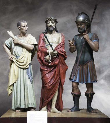 Se le conoce popularmente como «El Calderón» por el soldado que está a la izquierda de Cristo. El paso actual se realizó modificando el que D. José Roldán regaló a la Cofradía en 1747. Tal trabajo se llevó a cabo en 1951. Se puso como figura nueva a Poncio Pilatos, quitando de ese lugar a otra figura que llevaba un gorro y que representaba a Anás o Caifás. La citada figura que se quitó era de mayor tamaño que las otras dos que se dejaron y restauraron: «El Cristo de la caña» y el soldado romano citado o «Calderón». Esas modificaciones y restauraciones se realizaron también en Olot y la Cofradía pagó por ellas la suma de 4.881.- pesetas.