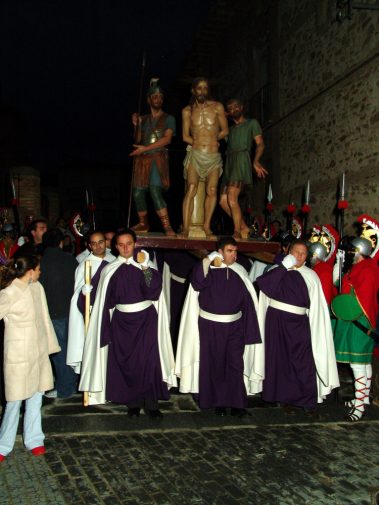 Romanos. La Cofradía tiene también una vistosa escuadra con un capitán, un cabo, catorce soldados y un paje, con los trajes adecuados. Es bonito el relevo de la guardia a la mitad del Sermón de las Siete Palabras.